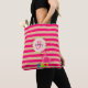 Pink Striped Flamingo Monogrammed Tote Bag