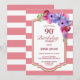 Pink Striped Floral 90th Birthday Dinner Party Invitation
