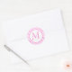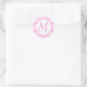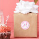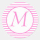 A simple, pink-striped, monogrammed sticker. This sticker is usable for envelope seals, gift tags, and birthday cards. This personalized sticker is perfect for all ages and occasions.