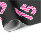 This fun wrapping paper design features the number "15" having a dark pink and light pink striped pattern, on a black colored background. Wrapping paper like this might be used when wrapping presents being given to somebody who is celebrating their 15th birthday, or to a couple celebrating their 15th wedding anniversary, or to celebrate some other fifteenth event or milestone. [~Z0000379]