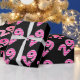 This fun wrapping paper design features the number "29" having a dark pink and light pink stripes pattern, on a black colored background. Wrapping paper like this might be used when wrapping gifts being given to celebrate somebody’s 29th birthday, or a couple’s 29th wedding anniversary, or some other twenty ninth event or milestone. [~Z0000379]