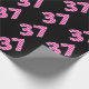 This fun wrapping paper design features the number "37" with a light pink and dark pink stripes pattern, on a black colored background. Wrapping paper like this might be used when wrapping presents being given to somebody who is celebrating their 37th birthday, or to a couple celebrating their 37th wedding anniversary, or to celebrate some other thirty seventh event or milestone. [~Z0000379]
