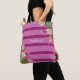 Pink Stripes and Flowers Personalized Tote Bag