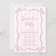 A trendy pink graduation party invitation template, featuring a whimsical doodle bow frame and stripes. Easily add a photo to the back of the invitation. A fun design for a girl grad party!