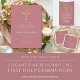 Pink Stripes Cross Girl First Communion Photo Invitation