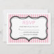 An RSVP card with a fancy decorative frame layered over top a pink and white striped pattern. Classy and simple.