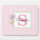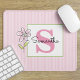 Add a feminine touch to your desk or home office with this charming customizable mouse pad. Featuring a classic pink and white striped pattern, accented with a simple flower, and personalized with your choice of monogram, this mouse pad is both practical and stylish. Modify the name and initial to create a unique accessory for your home or office workspace or make a thoughtful gift for family, friends, or coworkers. Perfect for use in any workspace, this mouse pad offers a delightful blend of function and flair.