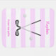 Add your baby's name to personalize this golfing enthusiast's baby blanket. You can also customize the caption which reads "Future star golfer" in matching pink text. The design has crossed golf clubs and two golf balls on a pink and white striped background. On the reverse side is a repeating pattern of golf balls, on a pale pink background to match the front.