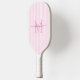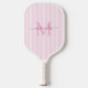 Serve up style on the court with this personalized pink striped pickleball paddle. Featuring a soft pink and white striped background, this chic design is customized with your monogram initial and name in a graceful script font—creating a timeless, feminine look that feels both stylish and refined.