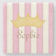 Pink Stripes Personalized Name Princess Crown Stone Coaster