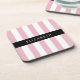 Pink Stripes, Striped Pattern, Lines, Your Name Beverage Coaster