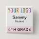 Our square student name button is easily personalizable with your school logo, student name, or other custom text. It attaches with a safety pin back. This affordable name tag is ideal for students (age 10 and up) on field trips, in classrooms, and other situations where quick identification of students is necessary. Designed in light pink and other colors (all colors are customizable). Our square buttons are 2 inch x 2 inch. Made in USA. No minimum order quantity and no setup fee.