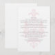 Simple with chic elegance describes this sophisticated Subtle Damask Wedding Information Card with a light pink damask flourish background. This modern info card is perfect for a traditional wedding and can be easily customized with your wedding details. For more customization options, click on the Customize It button.
