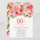 Pink Summer Floral Pretty 90th Birthday Invitation