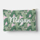 This cosmetic bag has a trendy Palm Beach aesthetic with banana leaves on a pink background and a monogram on a notched white square. The other side has pink and white stripes. You can add a name on the back.