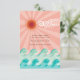 Pink Sun & Aqua Waves Beach Wedding Reception Card
