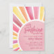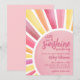A little ray of sunshine is on the way! Celebrate the upcoming arrival with this sweet and cheerful sun-themed baby shower invitation. A large sun fills the design, featuring a soft baby pink center with coordinating pink rays for a warm and radiant look. The event wording is centered within the sun in beautiful pink fonts, blending modern script and classic styles for a soft, balanced feel.