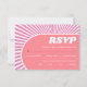 Pink sunrays retro groovy 70s inspired wedding RSVP card