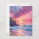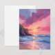 Pink Sunset Ocean Beach Waves Watercolor Card