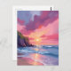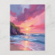 Pink Sunset Ocean Beach Waves Watercolor Postcard
