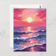 Pink Sunset Purple Ocean Waves Watercolor Postcard