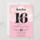 Pink Sweet 16 Birthday Girly Glam Balloons Script Invitation