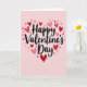 This Valentine's Day card features the words “Happy Valentine’s Day” in flowing black lettering across the center. Around the message, many small hearts in red and pink surround it like a frame. The hearts vary in size, from tiny dots to larger shapes, and together they form one big heart outline. The background is a soft pastel pink that keeps the whole scene warm and gentle. The little hearts look smooth and rounded, giving the design a sweet, caring feel. The layout is balanced and easy to read, with the text clearly standing out against the light background. It’s a simple, romantic look that feels perfect for someone special ❤️.