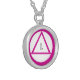 The Symbol goes Pink! Celebrate recovery in a fun way with this necklace. Simple design features a place to customize the number of years in the center of the triangle. Makes a great anniversary gift!
