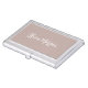 Elegant business card case features your name, title, or choice of personalization in white hand scripted cursive lettering on a neutral dusty pink taupe background.