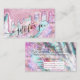 This girly and glamorous gift certificate business card is perfect for a stylish and trendy professional businesswoman. It depicts faux printed sparkly thick glitter drips on top of pearl nacre, opal, holographic, and iridescent background with a color scheme that includes pink, teal green, purple, white, blue, and soft yellow. It also features sweet and delicate handwritten script typography with the word, "a gift for you," to match this design's cute and modern vibe. It's pretty, glamorous, chic, and trendy.