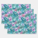 Pink & Teal Tropical Palm & Monstera Leaves Wrapping Paper Sheets