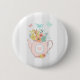 Pink Teapot with Flowers & Butterflies Button