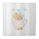 Pink Teapot with Flowers & Butterflies Ceramic Tile
