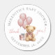 This cute and girly sticker is made to fit perfectly on the bottom of Hershey’s Kisses favors. It features an adorable baby pink watercolor bow in the center, with the mom-to-be's name and "Baby Shower" at the top and the event date at the bottom.
