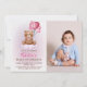 Pink Teddy Bear Balloons First Birthday Photo Invitation