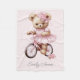 Small fleece blanket with a cute teddy bear wearing a pretty pink dress and riding a bicycle. Customize with your child's name.