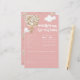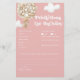 Step into a world of whimsy and anticipation with our Pink Teddy Bear Predictions and Advice Game, a heart warming celebration where dreams take flight amidst a backdrop of soft pastel hues and retro charm. This enchanting design features a darling beige bear soaring in a basket, lifted by a magnificent air balloon crafted from an array of small beige and gold balls. Each detail is lovingly crafted, capturing the essence of joy and excitement as the little one's arrival draws near. The soft pink background envelops the scene with a gentle warmth, while the retro font adds a touch of nostalgic elegance to the overall composition. Matching items available.
