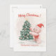Such a cute pink teddy bear stretches high to decorate the Christmas tree for this whimsical holiday postcard. Dressed up in a fine red Santa hat and pretty seasonal bow, saying "Merry Christmas" to everyone who is lucky enough to be on your holiday postcard list. Be sure you change the example "from" names and year to those you intend.