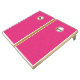 Natural Wood Cornhole Set, Yellow and Purple bags