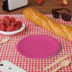 Pink textured surface with subtle swirling pattern paper plates