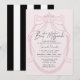 This elegant and chic bat mitzvah invitation features a light pink background with a pink tiara and bow/ribbon frame. The reverse side features a white background with black stripes. Personalize it for your needs. You can find matching products at my store.