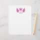A regal pink crown, deep pink wings, and a pink circle. You add your initial or monogram. Choose your color and font. Choose from five paper types and colors. Laser and inkjet compatible. It's fully customizable stationery! Bring back the art of the note, letter or billet doux (love letter).