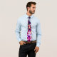 I bought this tie for a cosplay of Haruhi Fujioka for Halloween and anime conventions. It feels very nice and silky. It's my first tie ever, and I'm a pretty big fan since I always wanted a tie. It was longer than I expected it to be (quite a plus), but the purple stripe was also thinner than I expected it to be (a slight bit of a downer, but I don't mind too much). I had never used Zazzle before, but I am very impressed with the shipping time. I was looking for places to get a tie like this so last minute since the ties like this on Amazon were incompatible with Prime. Thus, I ended up here. I paid for express shipping, expected delivery October 30-31, and it arrived in the morning on the 30th. Very impressed. I might just use Zazzle again. The print job was okay. The colors were perfect, but as you can see in the pictures, the stripe was a little off-center, and there was a kink in the stripe around where it transitions from the wide end to the thin end. It should work perfectly for my cosplay, but it was a little too carelessly print to be a very professional tie.