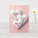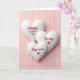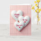 The front design shows three puffy, white heart shapes stacked in an overlapping vertical row, like a gentle cascade that suggests closeness and care ❤️. Behind them sits a soft pastel pink background made of neat rectangular tiles with faint vertical lines and slight beveled edges. The top heart carries the words “Happy Mother’s Day” in deep red lettering, centered and easy to read. On the middle heart, “To my” appears in the same deep red, placed neatly across the center with a small red heart accent beside it 🌼. The bottom heart reads “Step-mom” in matching deep red, also centered, with another tiny red heart tucked nearby as if echoing the message above. Soft, diffused lighting creates mild shadows along the heart edges, giving them a rounded, cushion-like depth that feels tender rather than formal. The pink tiles remain evenly spaced in the background, their subtle texture and gentle shading visible around the hearts.