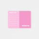 Practical sticky notes in pink with six to do list checkboxes on one side and a section to jot down notes or things to remember on the others. Dual purpose sticky notepad in a pink and white design personalized with name.