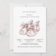 A pink toile girl baby shower design featuring delicate baby booties tied with a soft bow and patterned in classic toile. The pink baby shoes celebrate the arrival of a sweet baby girl and create a charming focal illustration for a girl baby shower. A lovely choice for pink baby celebrations welcoming a new little girl. Available in print, as a digital download or both.