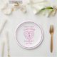 Pink tourmaline celebrating 5 years of love wedding anniversary party paper plates. Simple outline heart stone line art graphics on white 5th pink tourmaline Wedding Anniversary paper plates. Personalize with your own wedding party details. The 5th anniversary is associated with the gemstone pink tourmaline and the heart symbolises love. Graphics and design by Sarah Trett for www.mylittleedenweddings.com on zazzle.