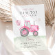 Watercolor Girl Pink Tractor & Balloons Birthday Party Invitation
