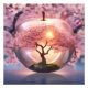 Pictured Is A Translucent Apple With A Apple Tree Inside With Pink Apple Blossoms Background.