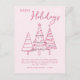 Pink Trees Hand Drawn Doodle Whimsy Christmas Holiday Postcard